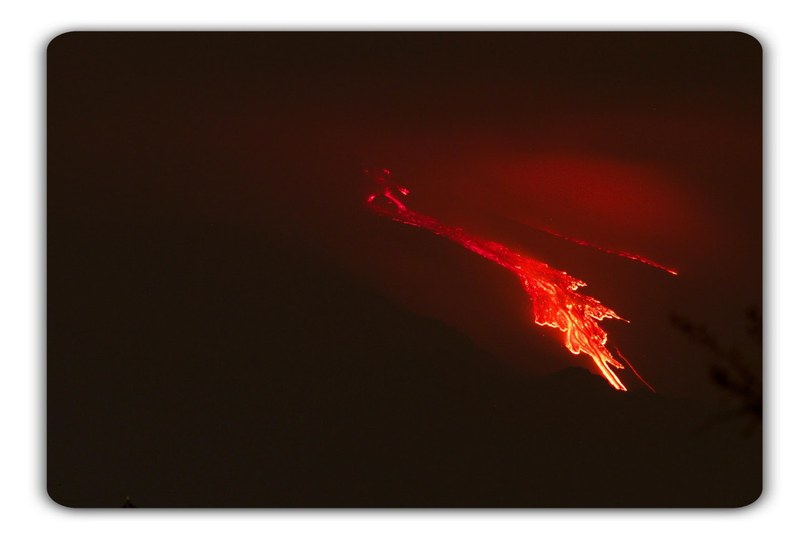 Well last night was just a regular night out here in Sicily, Etna decided to blow off more than steam and let out some of her red hot love juice. Like I said previously it is a common occurrence for this to happen... at first I thought it was just thunder since we had stormy weather the past week or so. DH and I grabbed our cameras and headed to the balcony. From here we were able to see the top, but not so great for pictures. So we drove down the road about 5 minutes to a spot where we could get a clear shot. We could see the lava shooting out straight up into the sky and the booming was really loud..it was surreal to say the least...it is quite enchanting and a bit mystical living on a volcano, like the Island is a living being and gets angry and has moods and everyone gets affected by her. Sometimes its like Lord of the Rings and Mordor is off in the distance taunting us. (hehe) It seems like the volano always has her biggest eruptions at night too...because earlier that day we had driven up to the top again and had lunch there! And then a few hours later she decides to go off. Phew...that was close. This was a small eruption, but still a pretty good amount of lava flow. And no ash rain! yay. Here are some pictures that DH got of the lava flowing down. He has a tripod and a really nice camera and lens so I let him get the pictures of the volcano...haha. ya I let him! :)